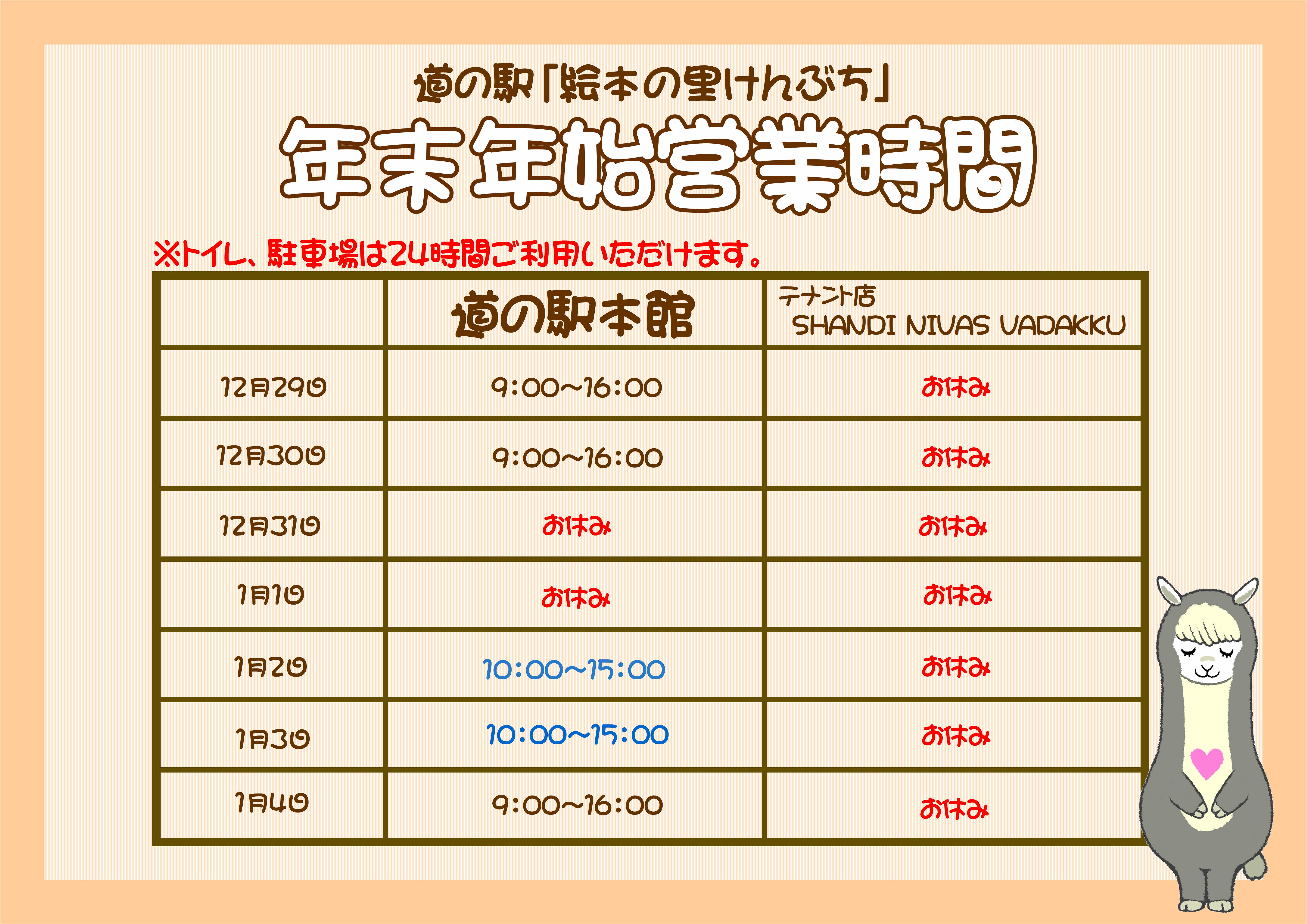 いつも道の駅絵本の里けんぶちをご利用いただき、誠にありがとうございます 道の駅絵本の里けんぶち並びにテナント店「SHANDI NIVAS VADAKKU」は 上記のとおり休業とさせていただきます スタンプにつきましても休業中は押印できませんのでよろしくお願い致し…