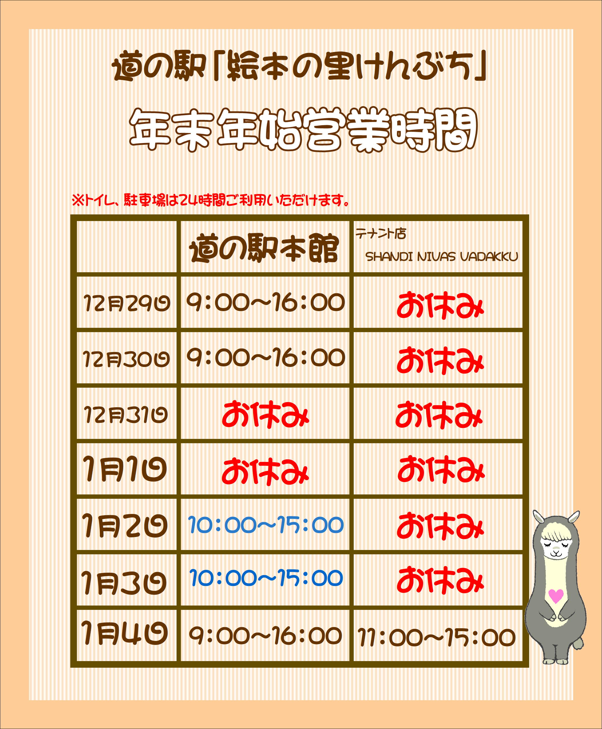 いつも道の駅絵本の里けんぶちをご利用いただき、誠にありがとうございます 道の駅絵本の里けんぶち並びにテナント店「S…
